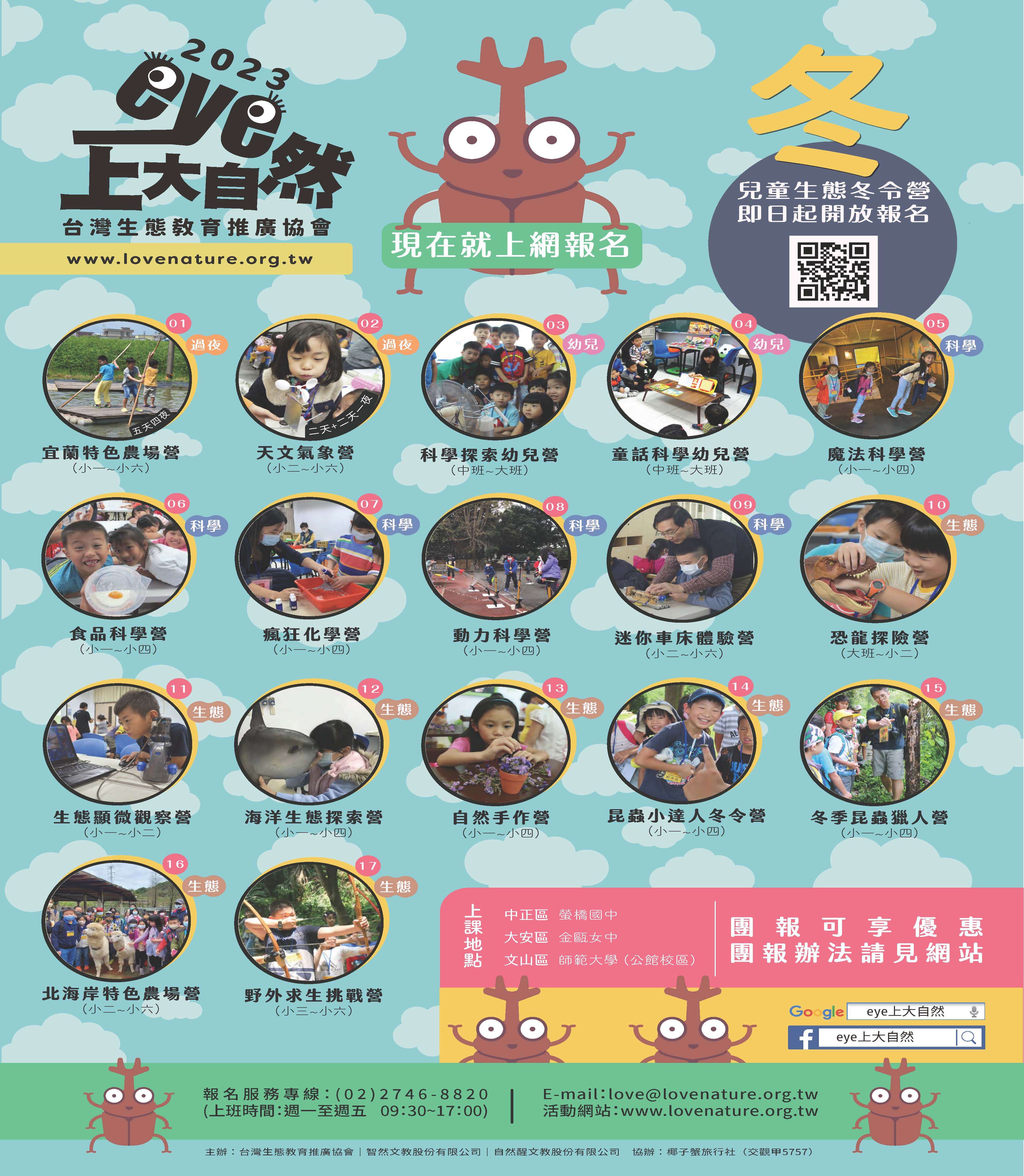 2023寒假兒童生態冬令營活動網址為 https://www.lovenature.org.tw/,歡迎線上報名。