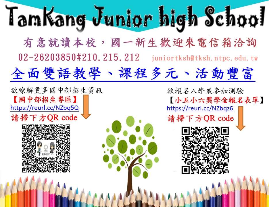 三、招生訊息公告於本校網頁:http://www.tksh.ntpc.edu. tw