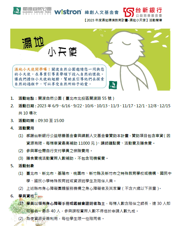 2、報名方式:逕至關渡自然公園網站(https://gdpark.org.tw/event/9463)報名。