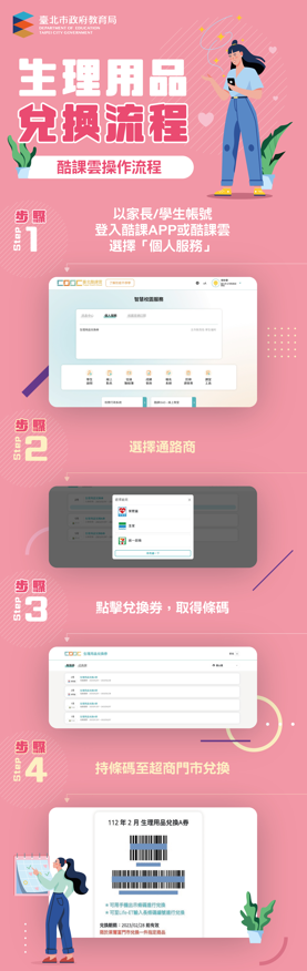 「112年國中小女性生理用品補助計畫」第2期兌換券2張,將於112年4月1日發放,兌換效期至112年5月31日止。