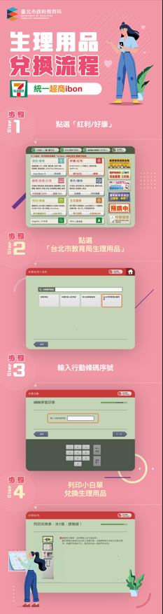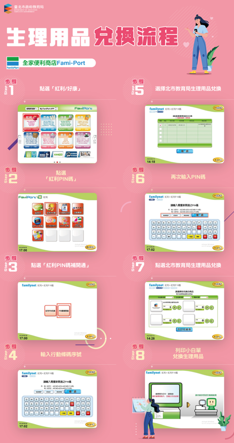 4、兌換品項:各家超商均提供10種以上可兌換之生理用品,請詳閱兌換券上說明文字,非指定商品不提供兌換。