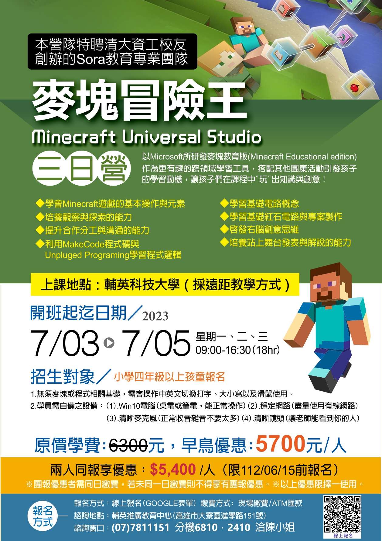 暑假營隊【麥塊冒險王(Minecraft Universal Studio)(三日營)】招生訊息
