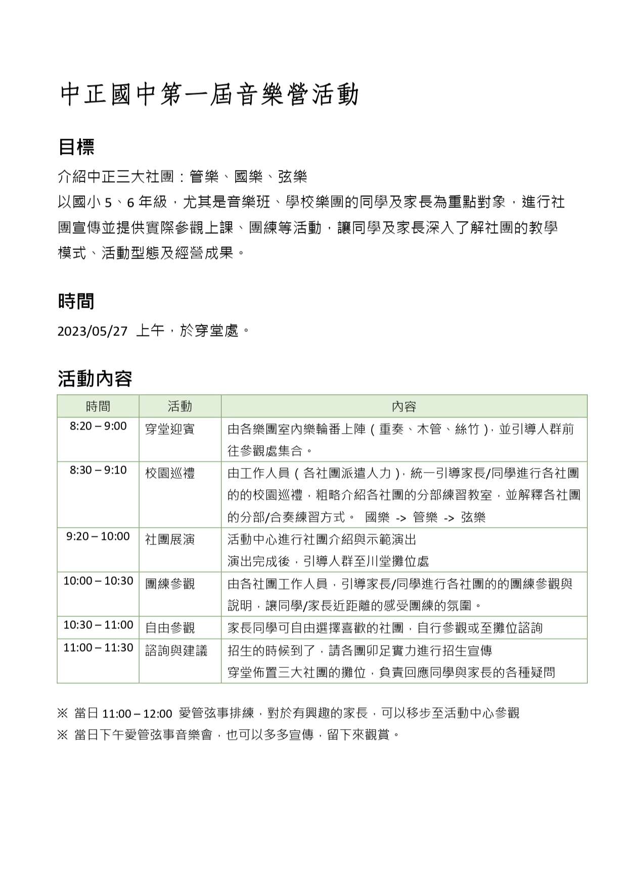 臺北市立中正國民中學「第一屆中正音樂節」活動資訊及海報