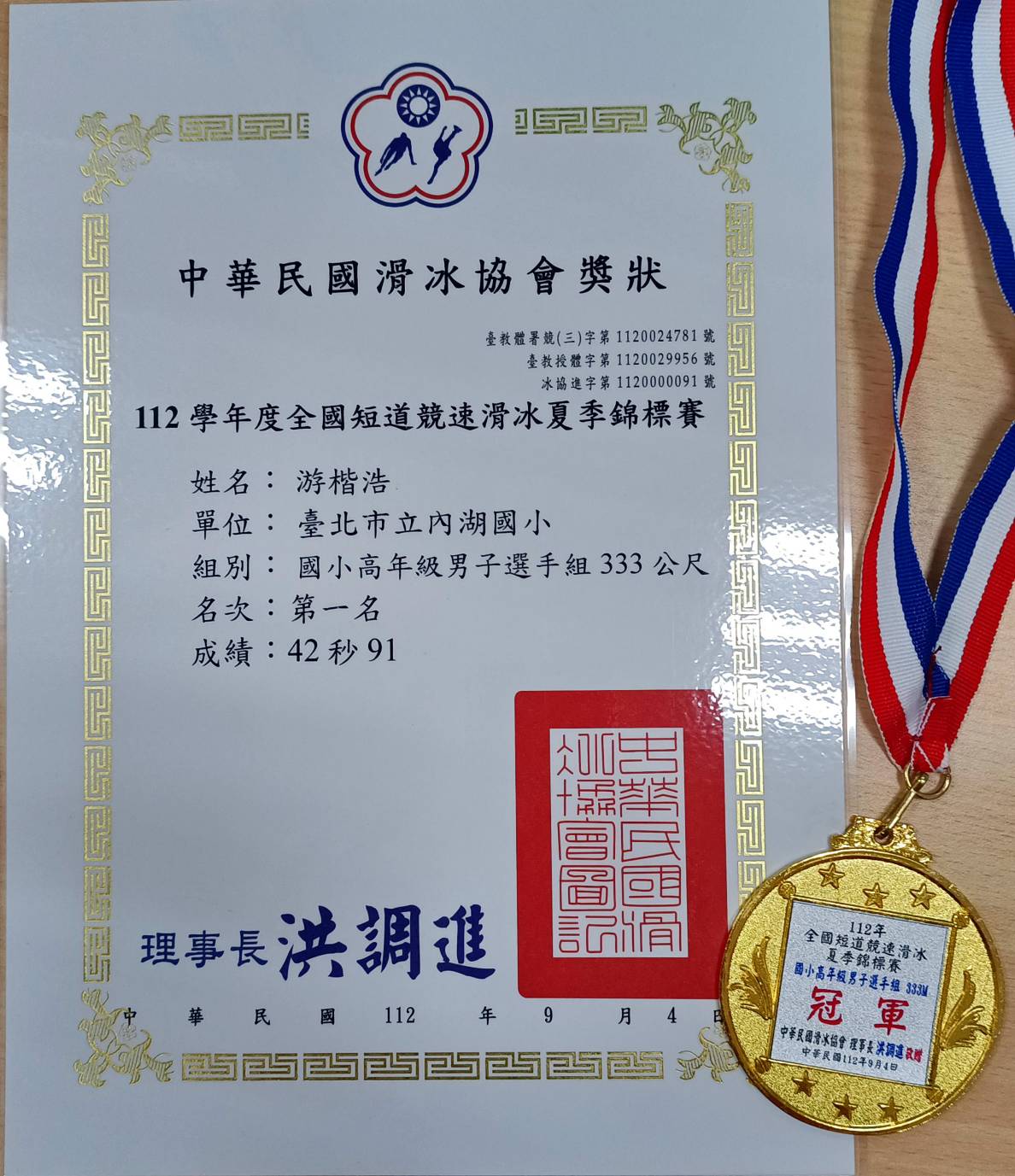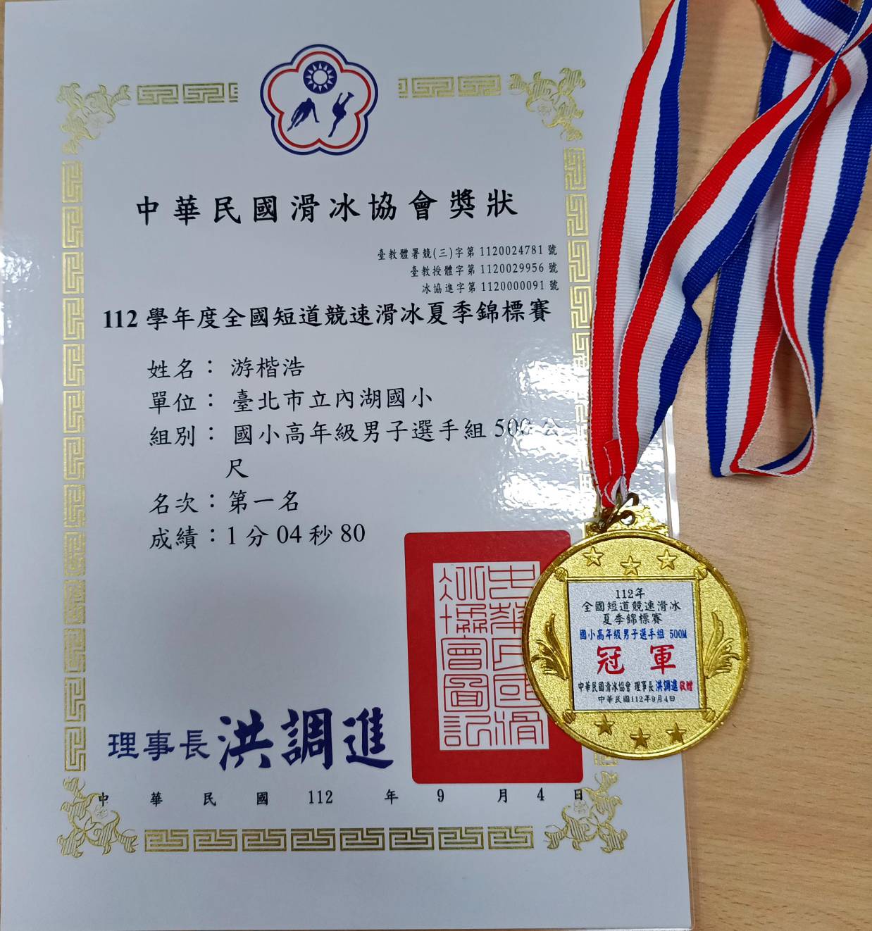 本校游楷浩同學參加112學年度全國短道競速滑冰夏季錦標賽,榮獲以下佳績: