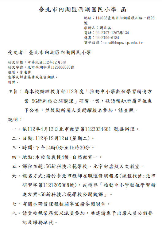 「推動中小學數位學習精進方案-5G新科技公開觀課」 歡迎參加,詳如下圖說明!