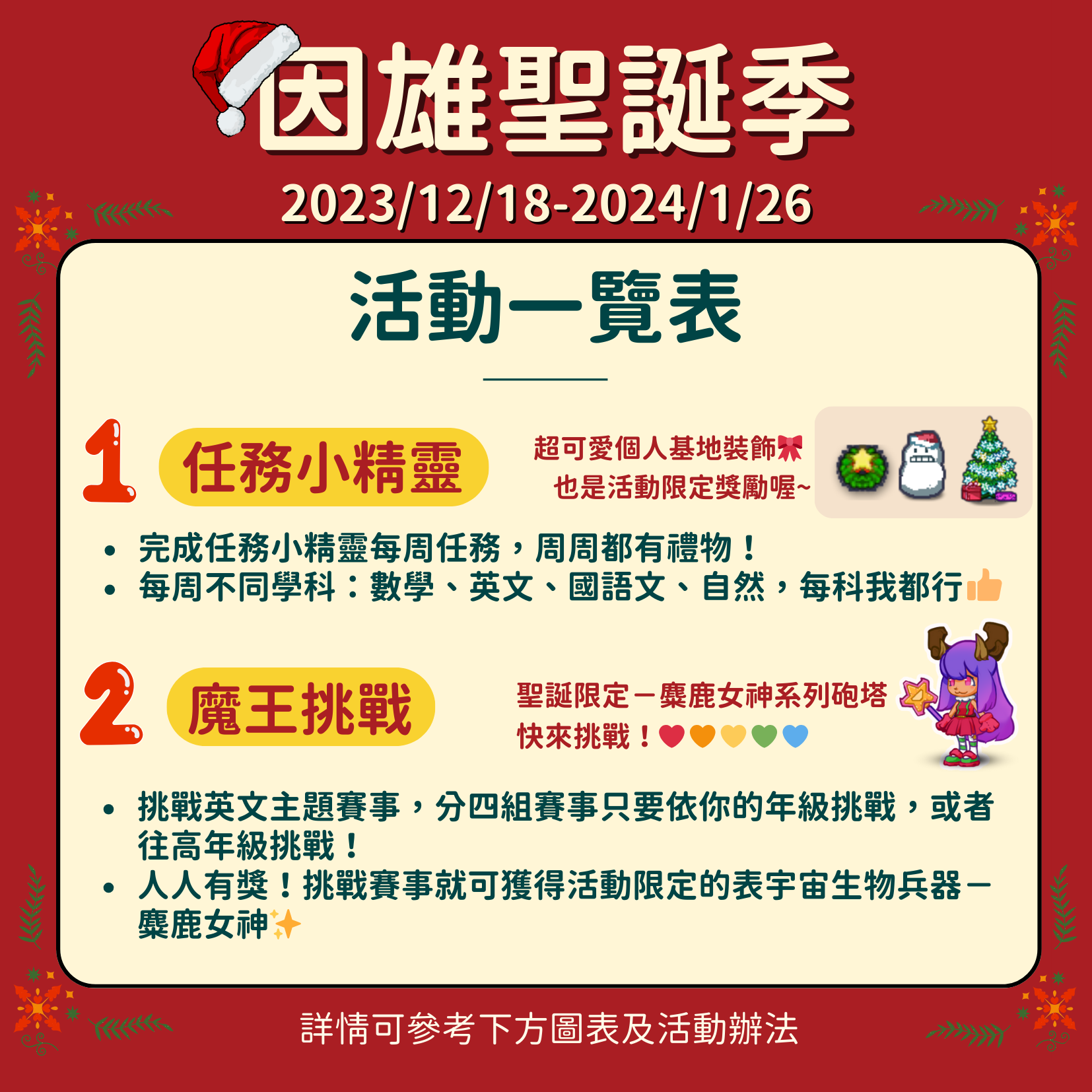 教育部因材網 「因雄崛起」平臺─112年「因雄聖誕季」活動實施計畫