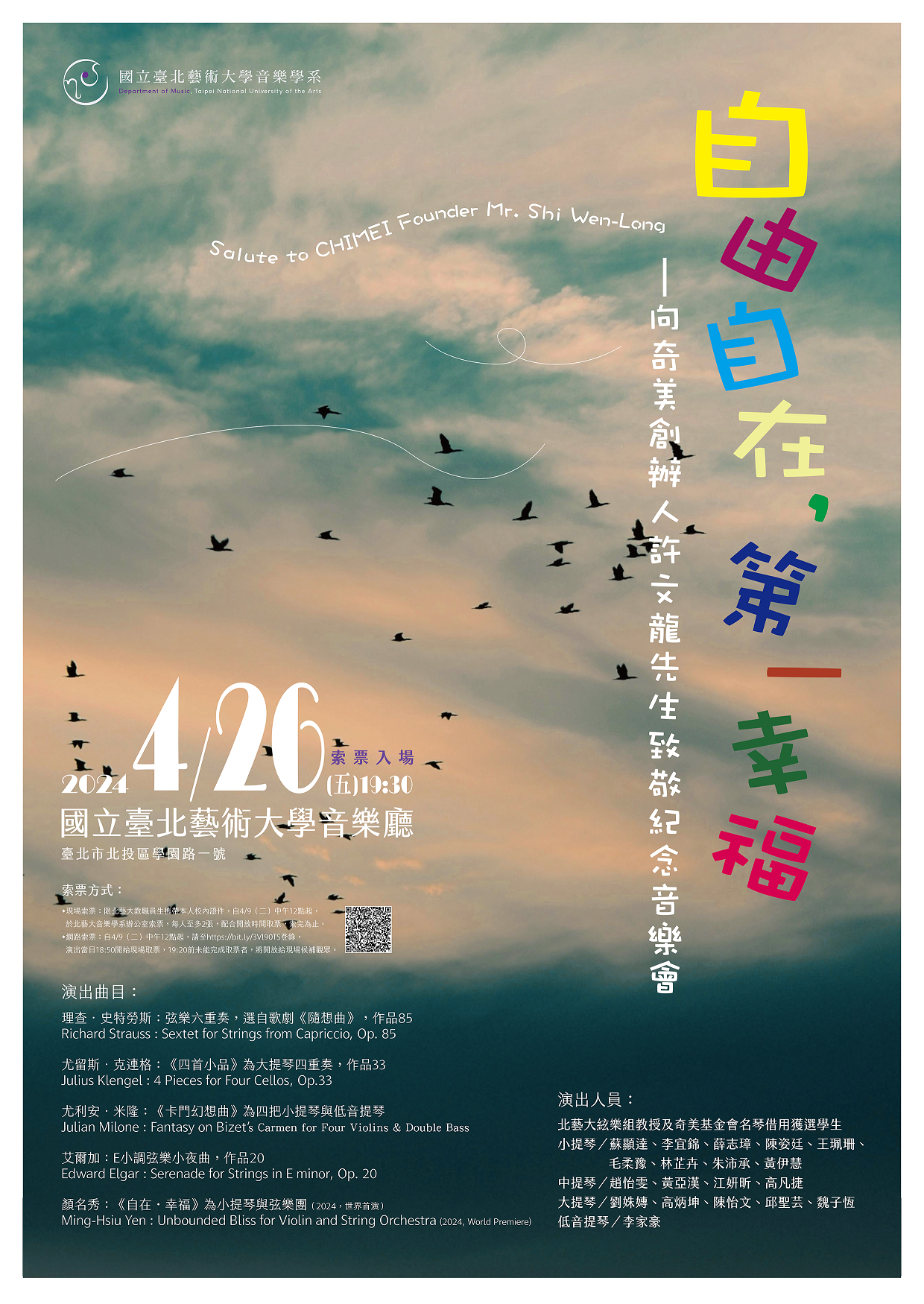 三、相關活動訊息請至北藝大音樂學系網站(https://music. tnua.edu.tw) 查詢。