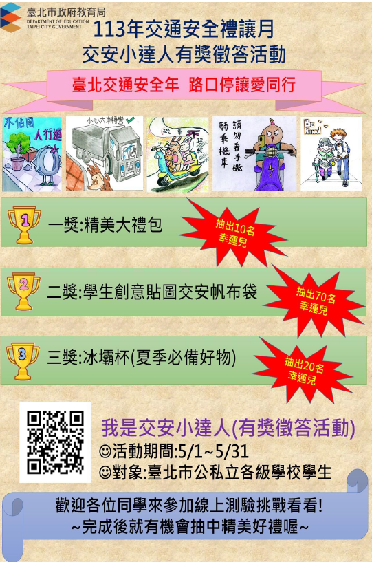 2. 活動方式:鼓勵學生可以參加線上測驗,測驗自己對於交通安全