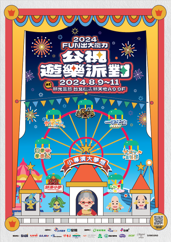 【FUN出大能力】公視遊樂派對,8月9日(五)-8月11 日(日)三天,在「新光三越台北信義新天地A9 9F」(地址:台北市信義區松壽路9號9F)