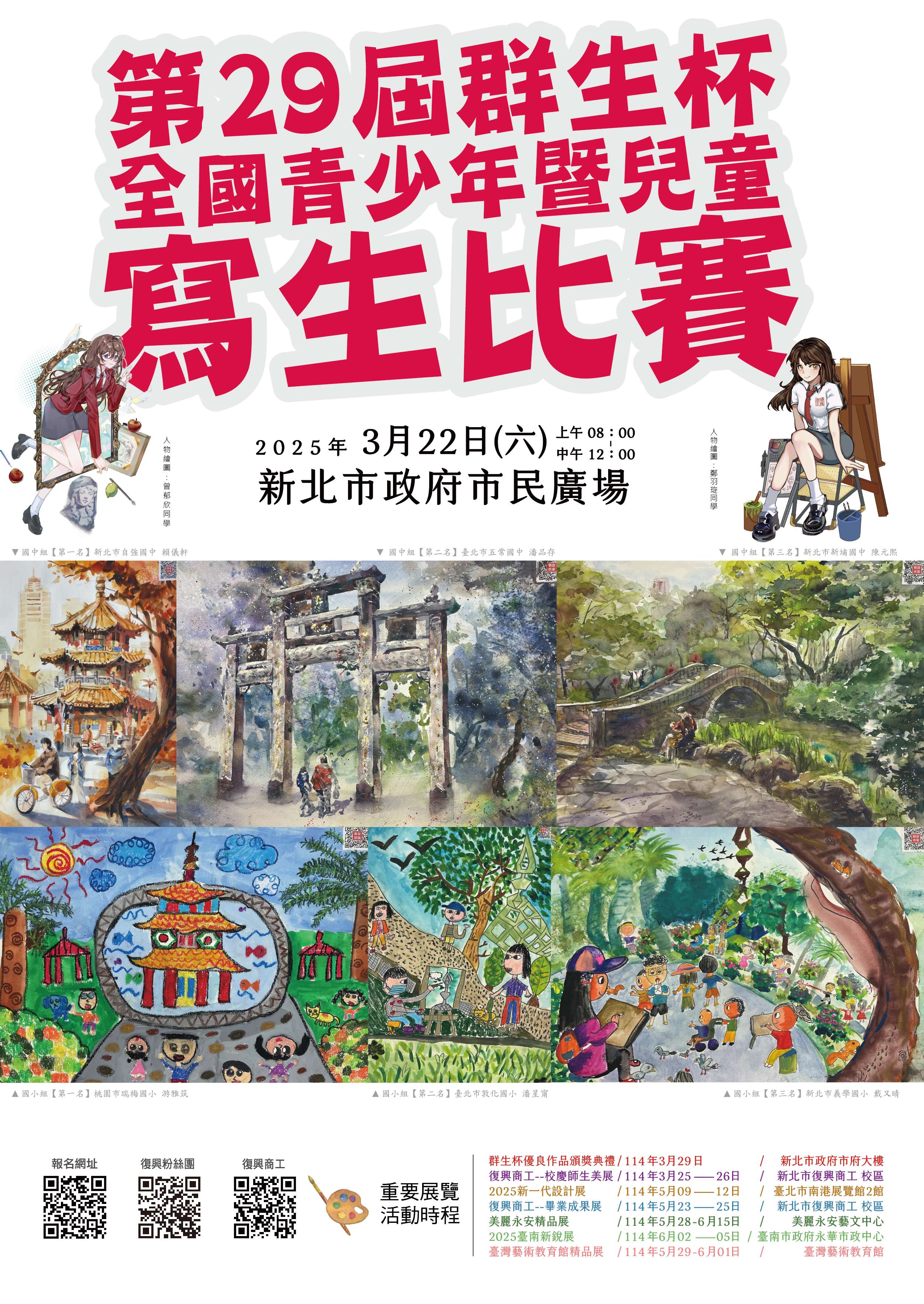 五、線上報名網址: https://reurl.cc/xpLQve (即日起至114年3月17日(一)23:59止)六、比賽簡章公告於 群生基金會網站首頁 http://ischool.fhvs.ntpc.edu.tw /ischool/publish_page/193/,敬請下載查閱。