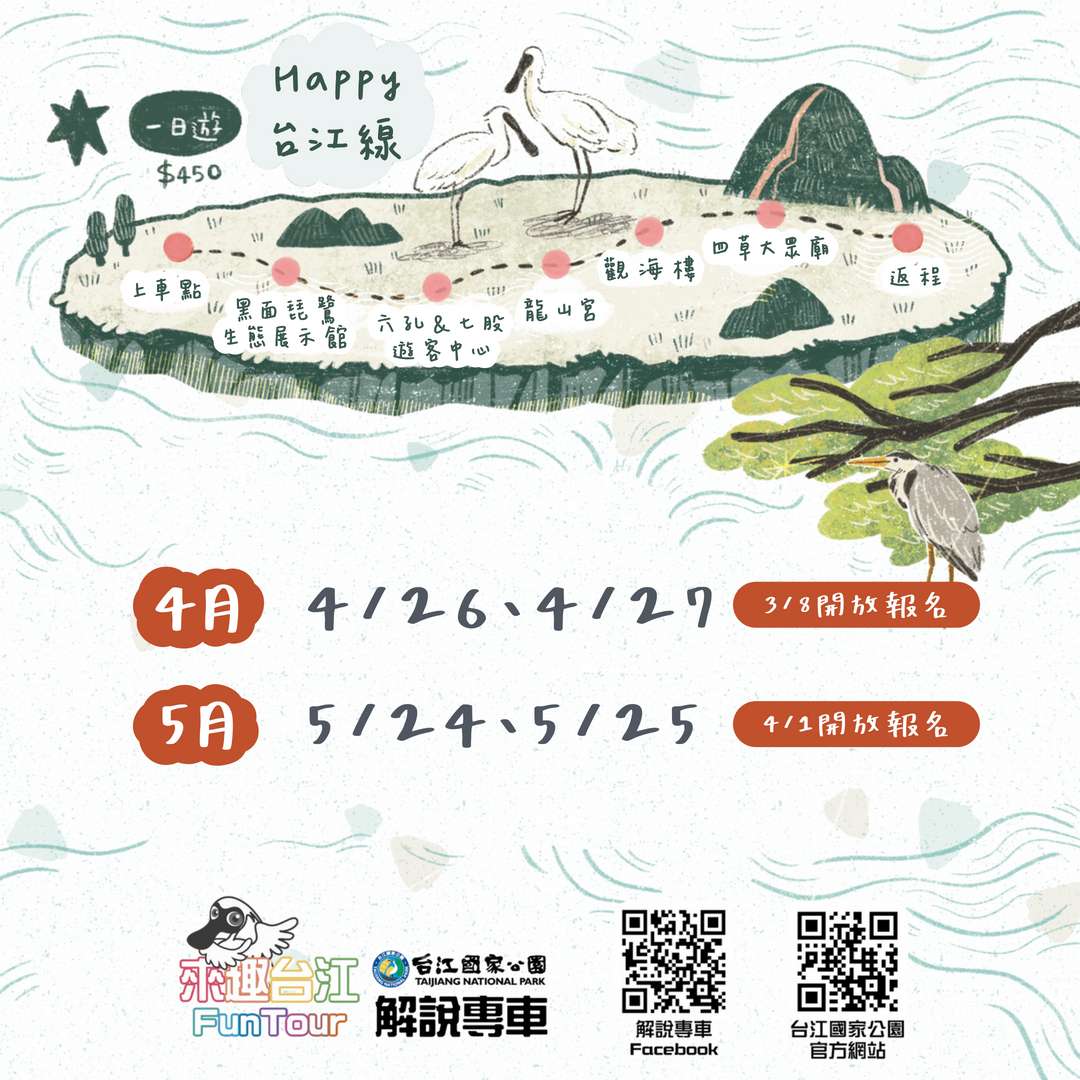 一、奉本府交下內政部國家公園署台江國家公園管理處114年3 月12日江企字第1141001883號函辦理。 二、檢附內政部國家公園署台江國家公園管理處原函、活動海 報各1份。
