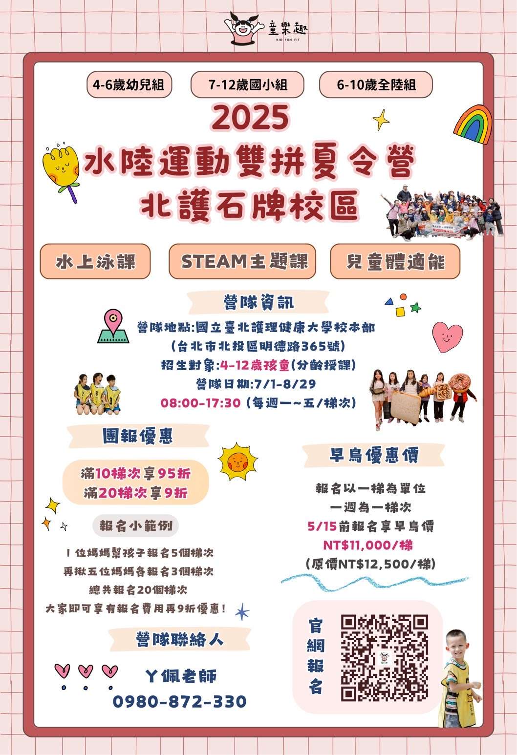 一、推廣教育中心與童博健康管理工作室合作開辦「2025 水陸運動夏令營」即日起受理報名。