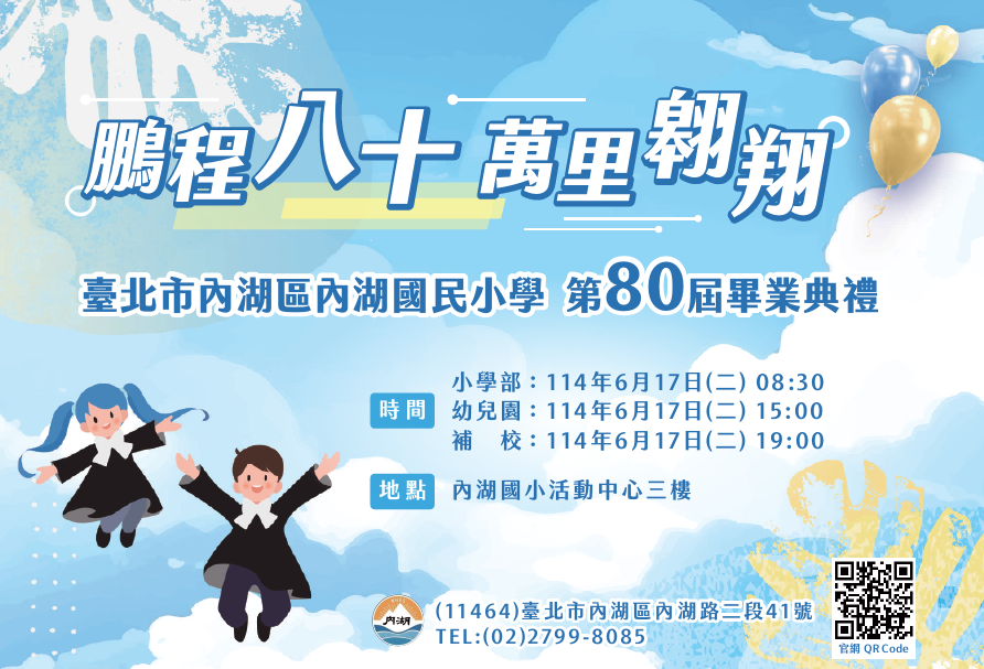 臺北市內湖區內湖國民小學第八十屆畢業典禮鵬程八十 萬里翱翔 畢業典禮活動程序