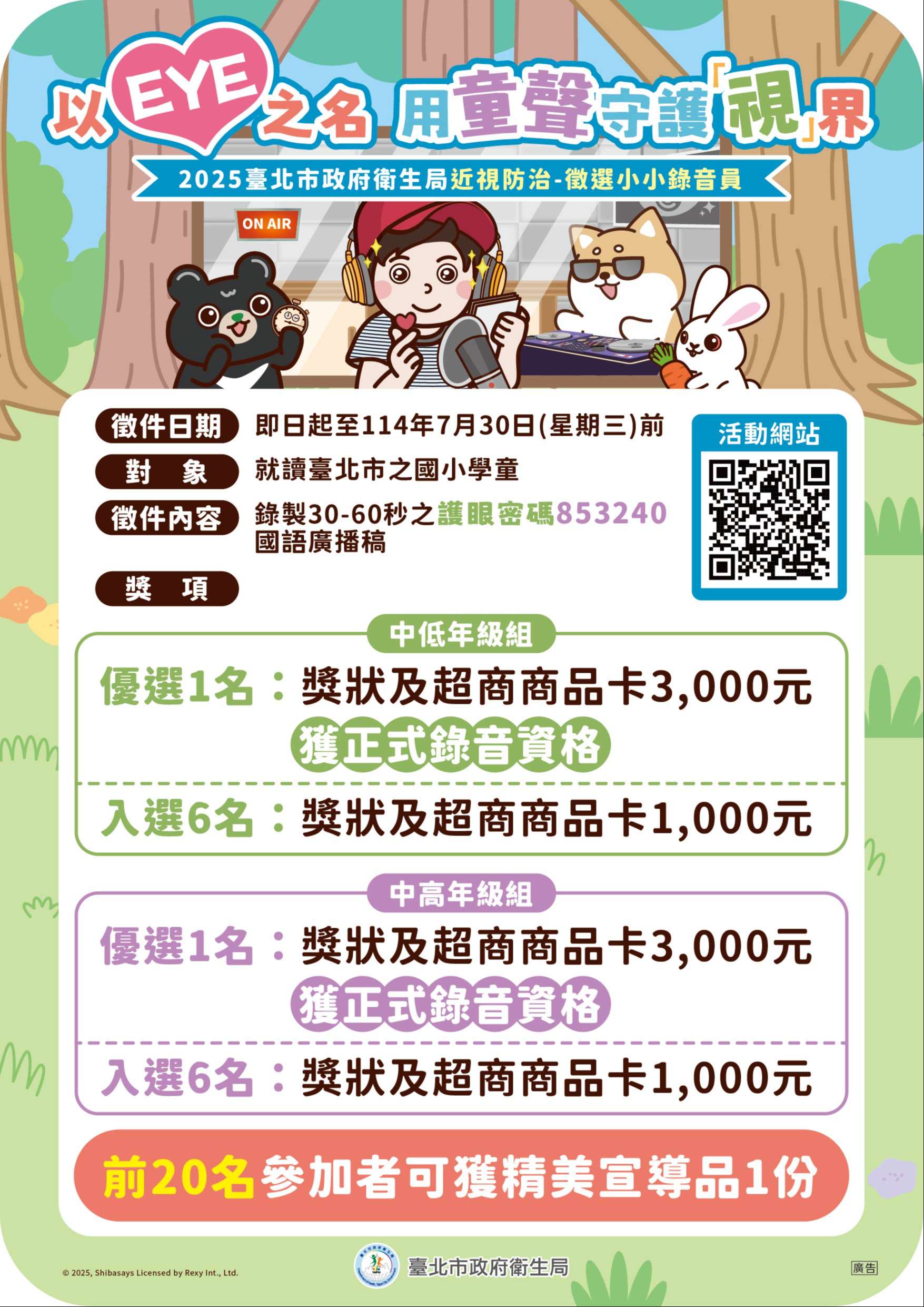 四、活動簡章詳本局網站/高度近視防治專區(網址: https://pse.is/7tpsx7),檢附活動圖卡(如附件)1 份,鼓勵學童踴躍參加。