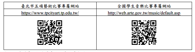 四、其他競賽相關訊息請至臺北市五項藝術比賽專屬網站( 網址:https:// www.tpcityart.tp.edu.tw)查詢。