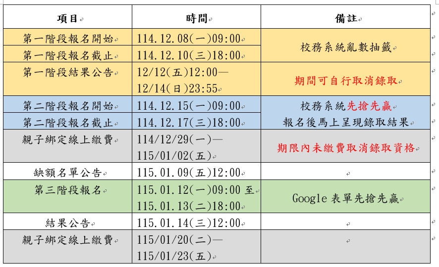 114-2課後學藝活動暨課外社團報名時程及相關注意事項